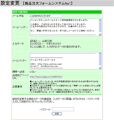 このような形で、ウェブ上で簡単に設定変更ができますので、CGIの知識がなくても容易に思いどおりの設定をすることができます。
